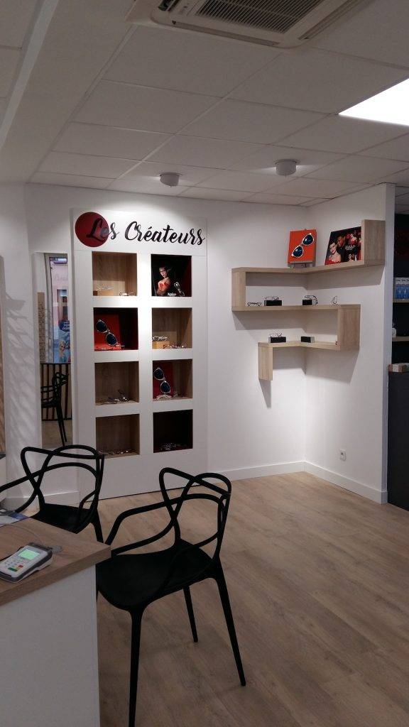 L’objectif de l’agencement de ce magasin d’optique d’une soixantaine de m2 était d’avoir des espaces propres à chaque typologie de client, qu’ils puissent être identifiables facilement, tout en mettant en valeur certaines paires, comme les montures créateurs.